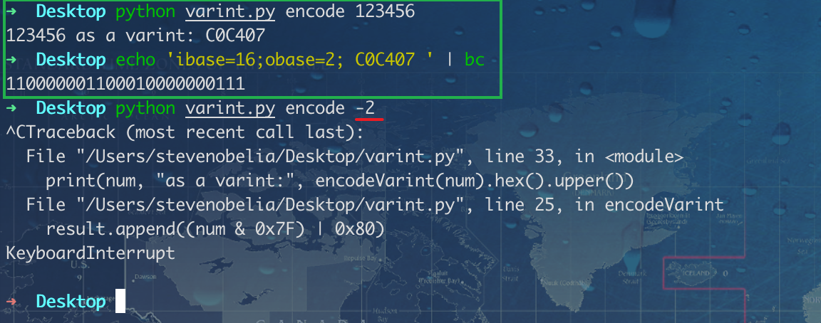 参考 python: Command Line Varint Decoder/Encoder Tool,但是对负数支持不太好。