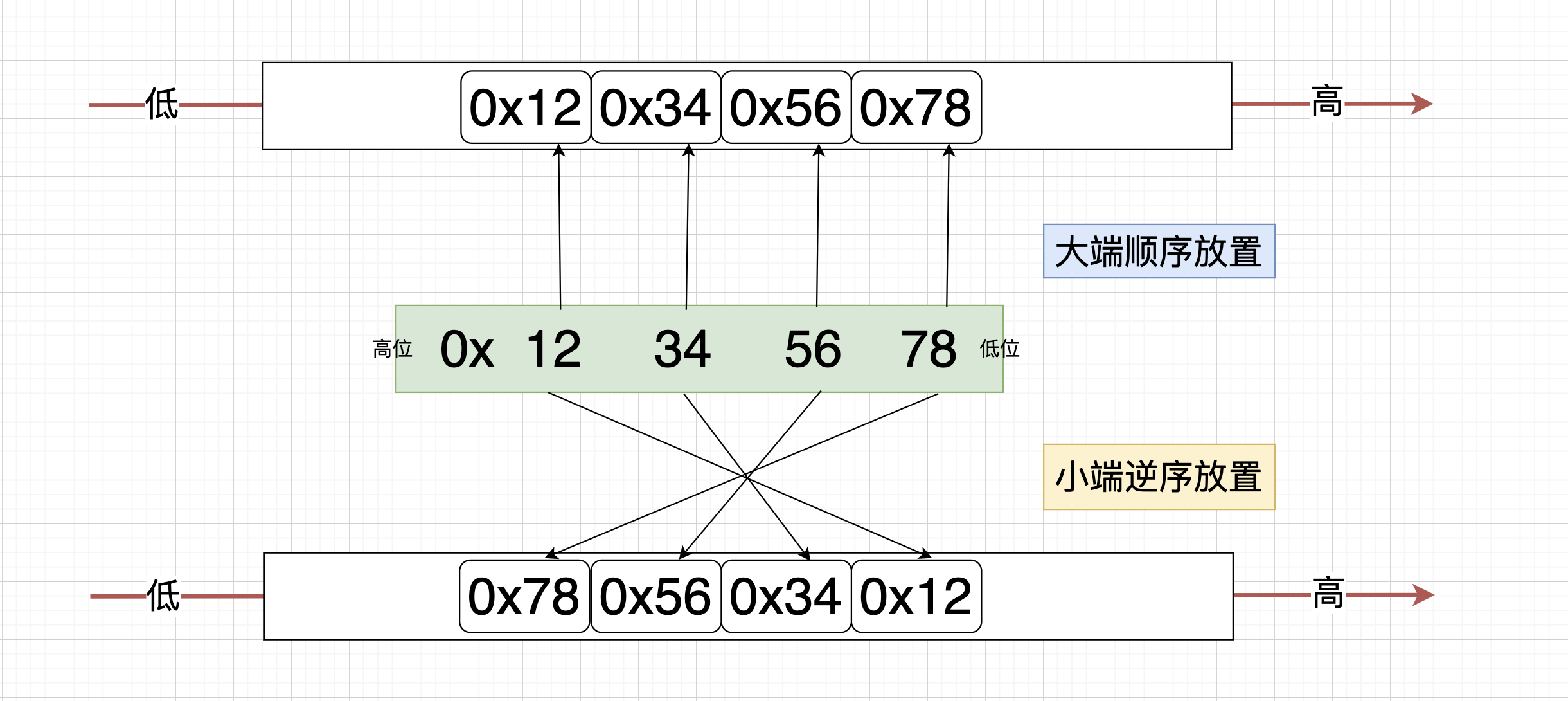 低位低地址,高位高地址被称为小端序(Little),参考下图可以理解为 逆序放置。