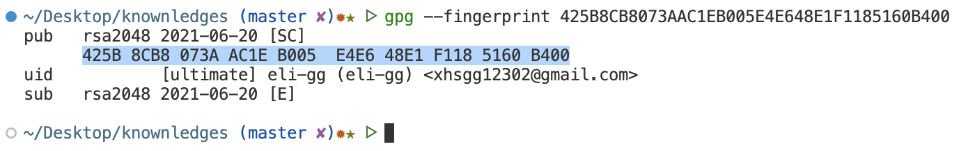 查看keygripgpg --with-keygrip -K 425B8CB8073AAC1EB005E4E648E1F1185160B400