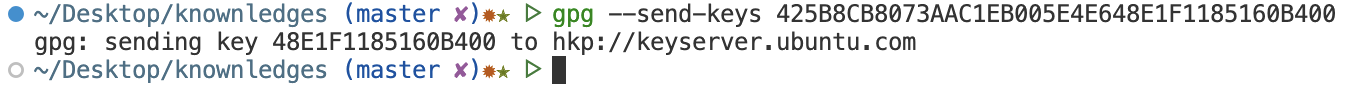1.: 通过 gpg--send-keys方式。gpg --keyserver hkp://keyserver.ubuntu.com --send-keys [KEYID]gpg --keyserver hkps://keys.openpgp.org --recv-keys [KEYID]--keyserver nameThis option is deprecated - please use the –keyserver in ‘dirmngr.conf’ instead.