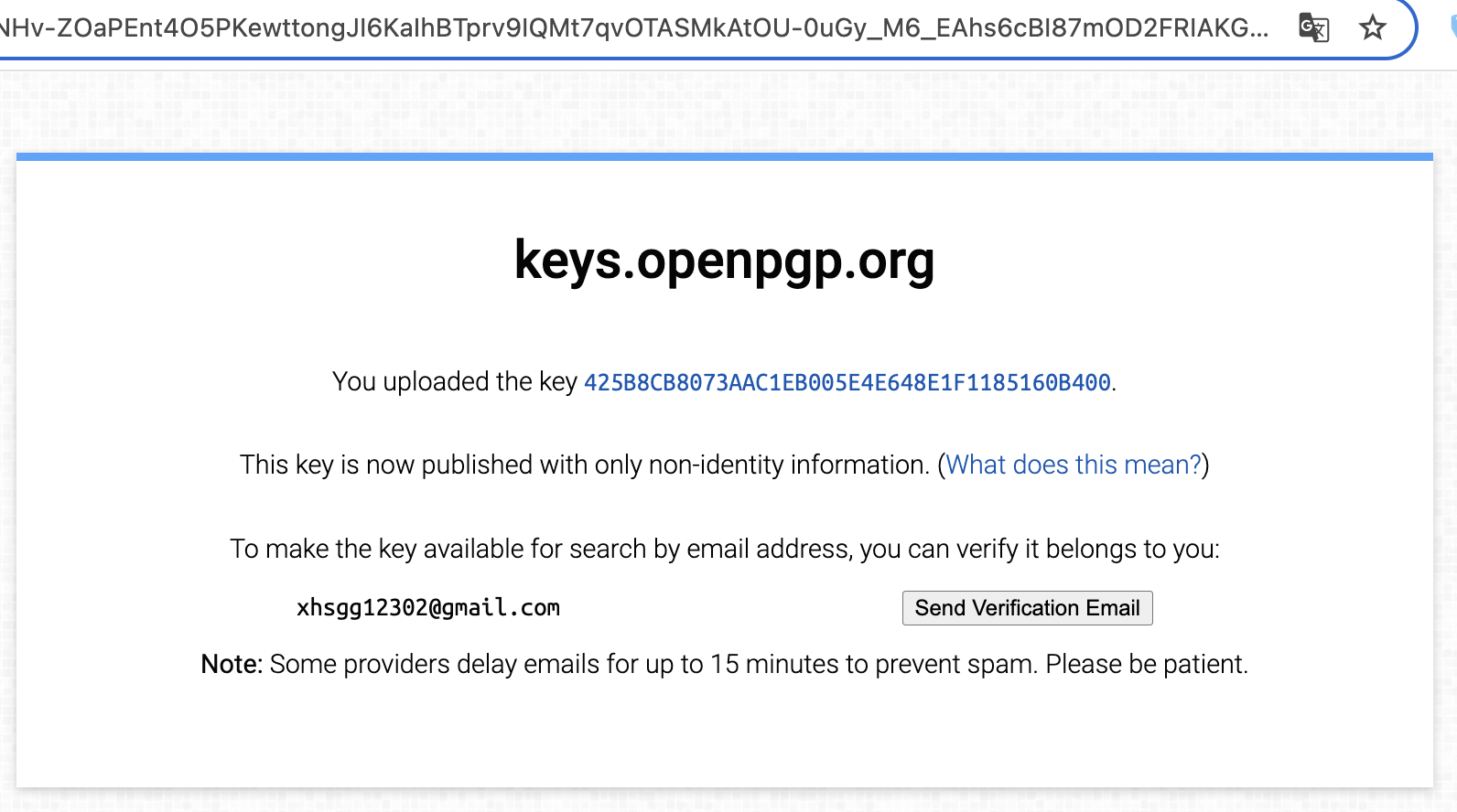 2.: 通过 curl 方式。 参考gpg --export 425B8CB8073AAC1EB005E4E648E1F1185160B400 | curl -T - https://keys.openpgp.org