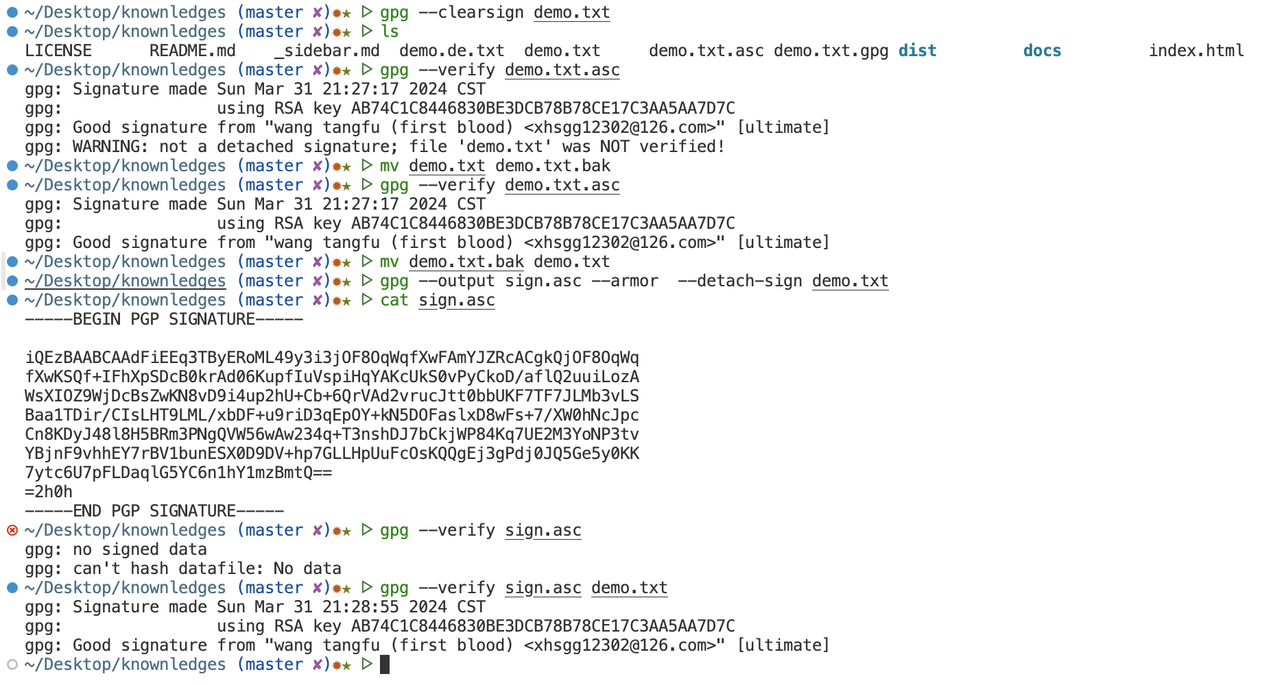 可以重命名’demo.txt’或者使用--detach-sign来消除警告。 参考