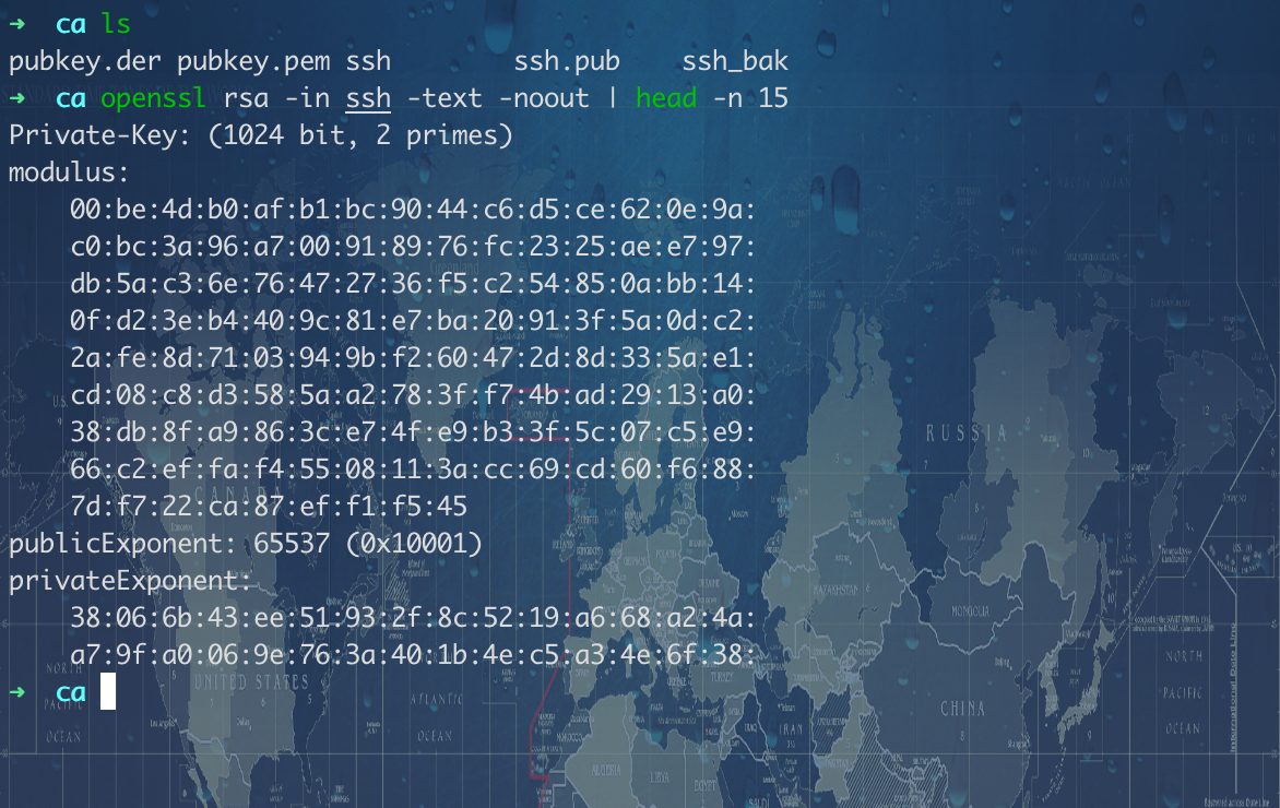 openssh 转 rsa:ssh-keygen -f ssh -m PEM -p,一路回车,查看 ssh 文件开始结束标记已经变成 RSA 了。3.查看私匙信息:openssl rsa -in ssh -text -noout | head -n 15