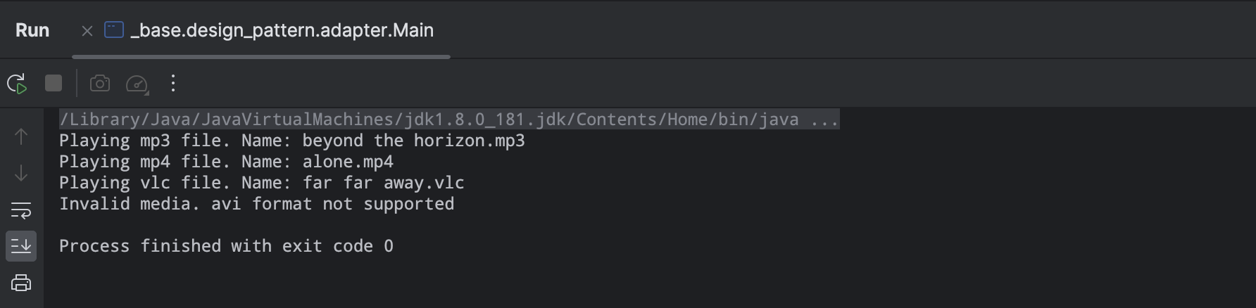 我们通过下面的实例来演示适配器模式的使用。其中,音频播放器设备只能播放 mp3 文件,通过使用一个更高级的音频播放器来播放 vlc 和 mp4 文件。UML #