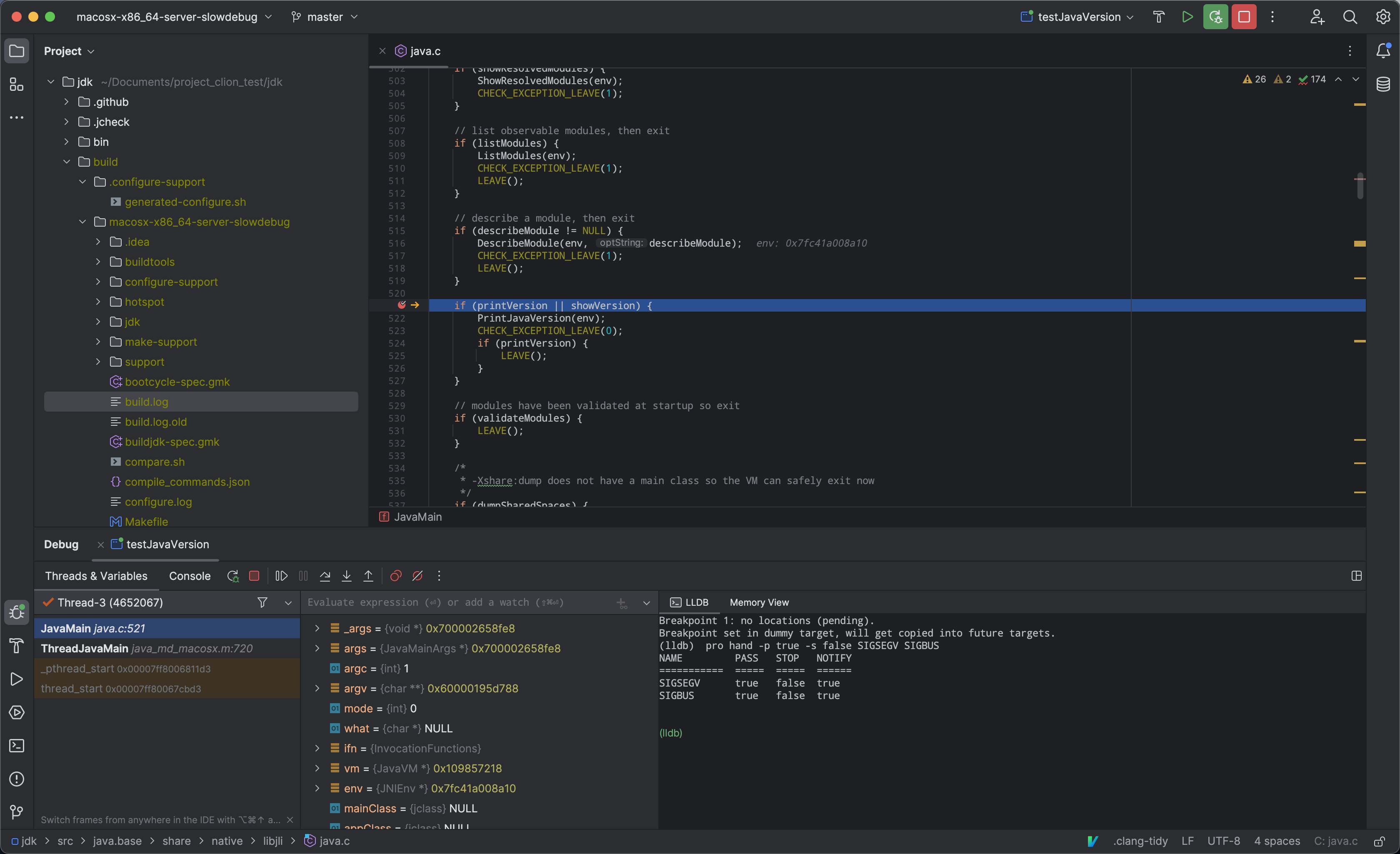 使用lldb debug的时候会出现 Signal: SIGSEGV (signal SIGSEGV) ,