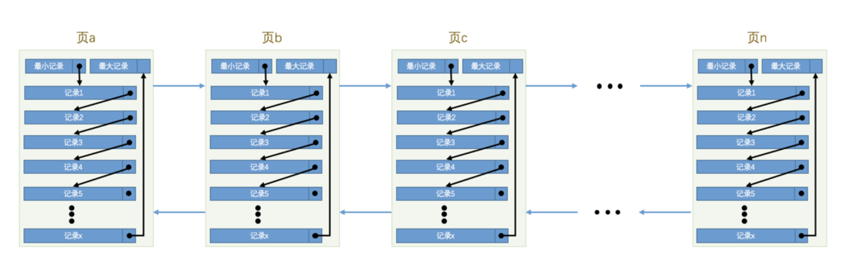 ②各个存放用户记录的页也是根据页中用户记录的主键大小顺序排成一个双向链表。