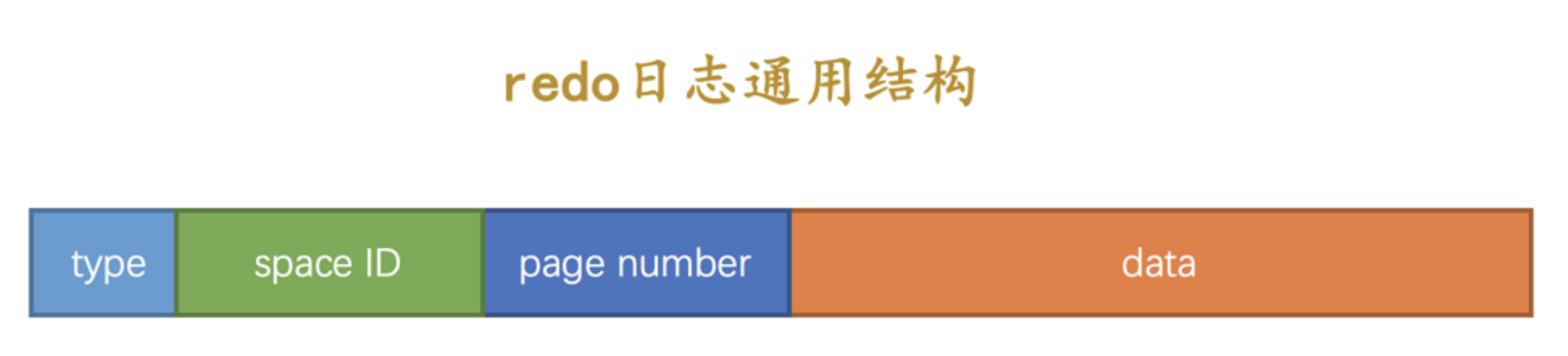 通过上边的内容我们知道, redo 日志本质上只是记录了一下事务对数据库做了哪些修改。 设计 InnoDB 的大叔们针对事务对数据库的不同修改场景定义了多种类型的 redo 日志,但是绝大部分类型的 redo 日志都有下边这种通用的结构: