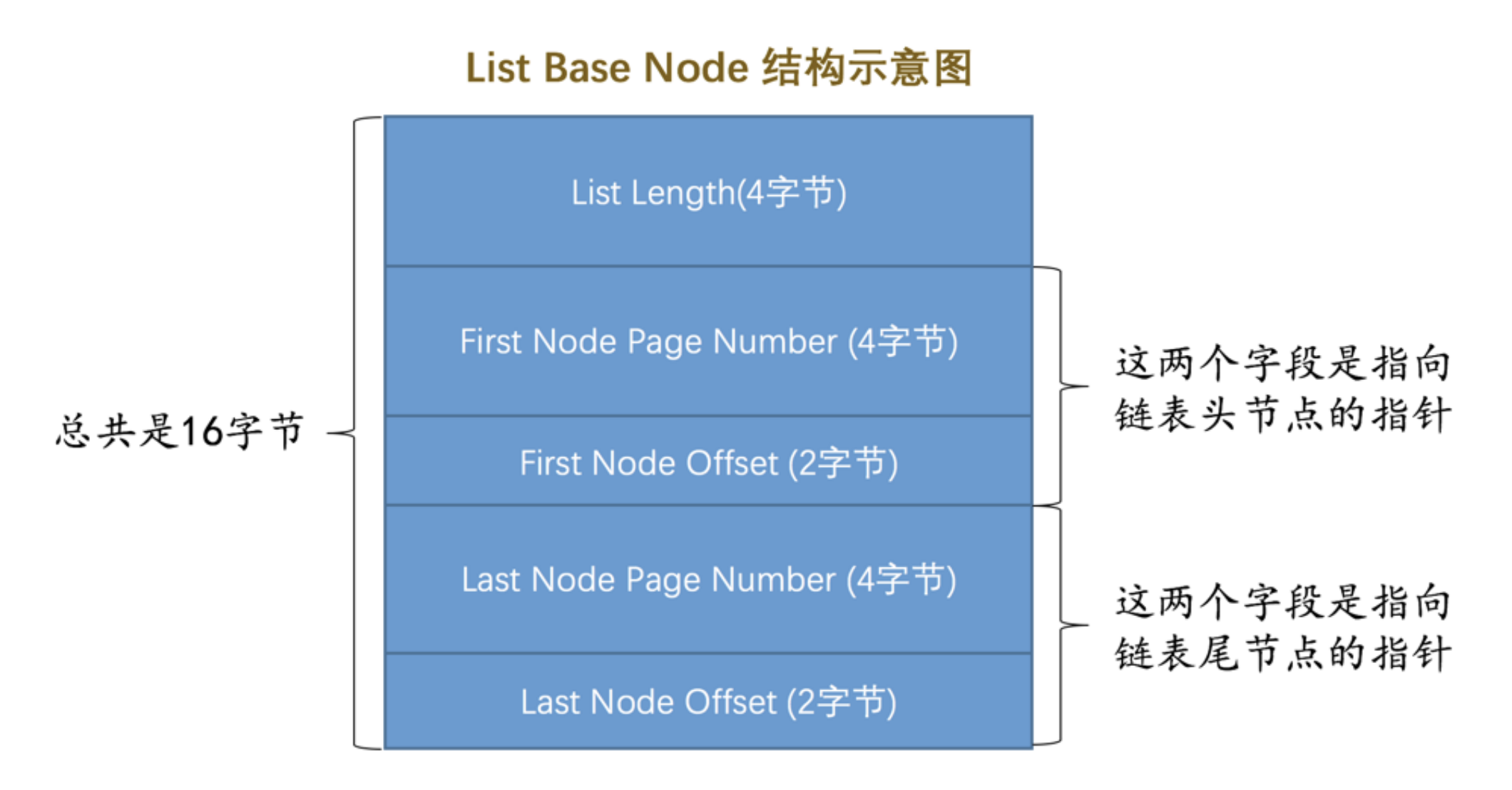 整个 List Base Node 占用 16 个字节的存储空间。