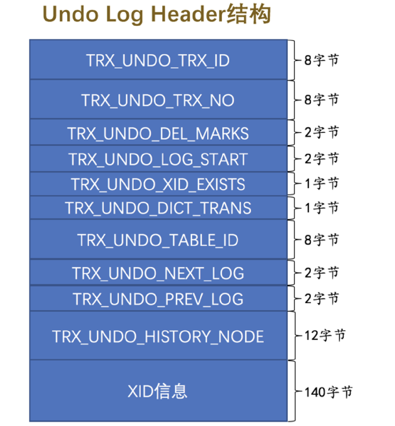 TRX_UNDO_TABLE_ID :如果 TRX_UNDO_DICT_TRANS 为真,那么本属性表示DDL语句操作的表的 table id 。